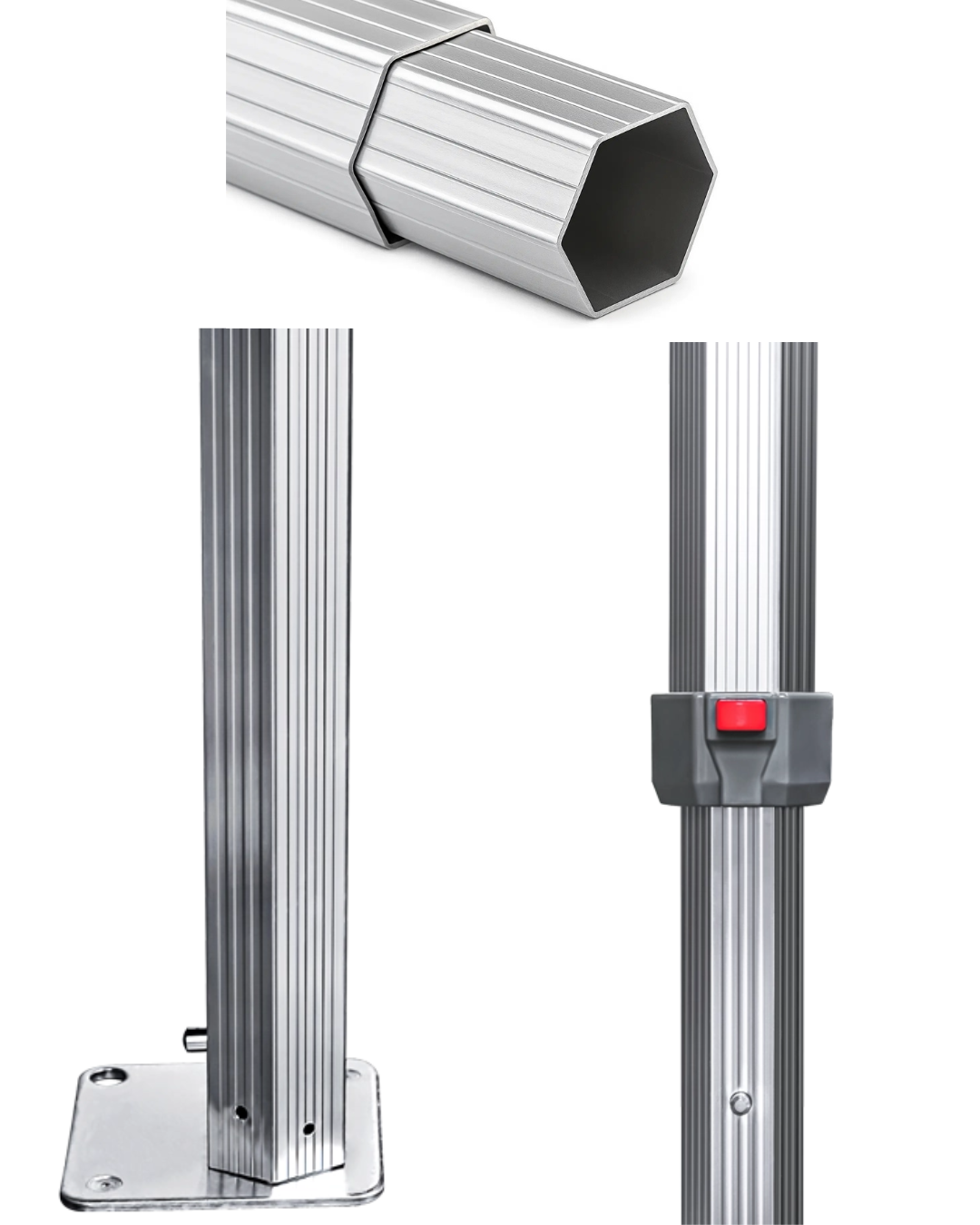 Accesorios de unión combinados en aluminio y poliuretano para máxima firmeza.